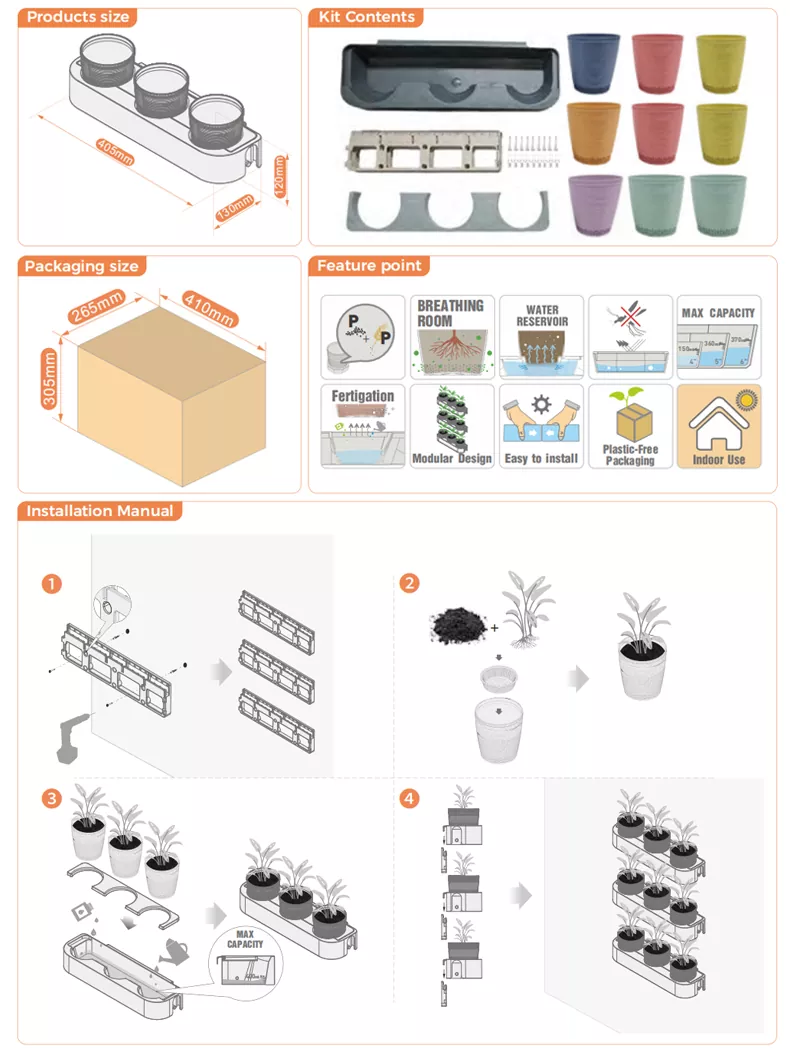 Watex is een professionele fabrikant van plastic bloempotten voor ecologisch tuinieren in China en een OEM-fabriek voor plastic vazen voor ecologisch tuinieren. We hebben 30 jaar ervaring in de export van buitenlandse handel. Eco Gardening Vertical Garden Flower pot Het is een bloempottenset die kan worden gebruikt voor verticale planten aan de muur. Het kleurrijke ontwerp maakt de kleuren levendiger. We kijken ernaar uit om uw langetermijnpartner in China te worden.