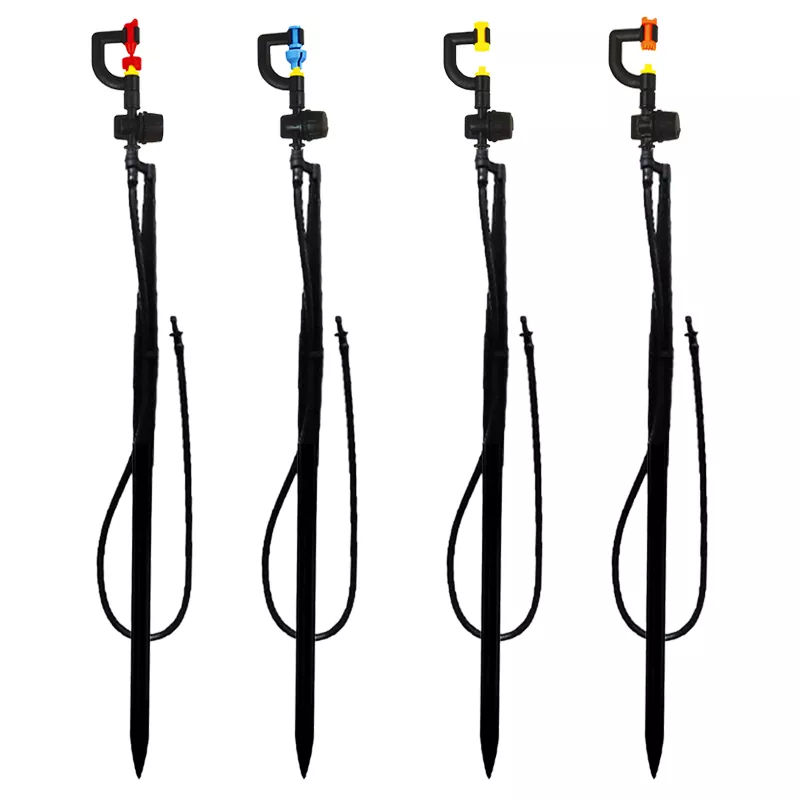 De stevige verbindingsspijkers zijn ontworpen voor praktisch gebruik. Eenmaal in de grond gestoken, kunnen ze het mondstuk stevig bevestigen en voorkomen dat het verschuift als gevolg van wind- of waterstromingsinvloeden. Ondertussen zorgt de verhoogde sproeihoek ervoor dat de waterstroom over de oppervlaktelaag van de vegetatie kan stromen en het wortelgebied gelijkmatig kan bedekken, waardoor de waterverdamping wordt verminderd en de irrigatie-efficiëntie aanzienlijk wordt verbeterd, waardoor de noodzaak van herhaalde positieaanpassingen en aanvullende watergift wordt geëlimineerd.