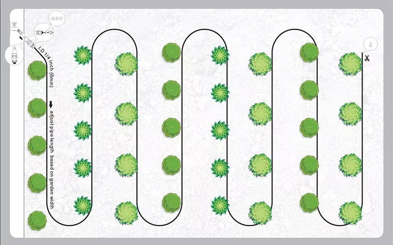 Deze tuindruppelslang is ideaal voor gazons, moestuinen, bloembedden en andere beplante gebieden, met name geschikt voor precisie-irrigatie van in rijen gekweekte planten.