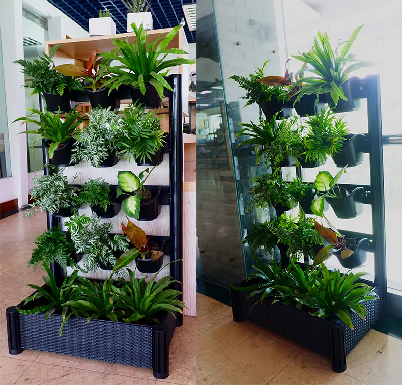 61*40*102cm (L*B*H) Binnen Vrijstaande Groene muur met 12 stuks x#1 pot (13,7 x 16,5 x12,5 cm), 3 stuks x 4” Pot, zelfwatergevende capillaire bak