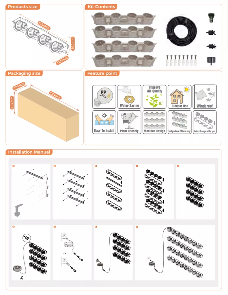 Watex is een fabrikant en leverancier gespecialiseerd in Verticaal Tuinieren Startpakketten, dit My Design Verticaal Tuinieren Startpakket is geschikt voor beginnende tuiniers. Het maakt verticale beplanting op muren mogelijk, waardoor gebruikers hun favoriete groene planten kunnen laten groeien. Watex heeft 30 jaar ervaring in de buitenlandse handel in China. Het bedrijf exporteert zijn producten naar landen in Australië, Europa en andere regio's. Het is een betrouwbare onderneming