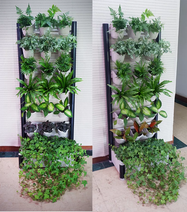 Je kunt van elke muur een levendige verticale tuin maken zonder dat je er gaten in hoeft te spijkeren of boren. Voor huurders of gebruikers die aandacht besteden aan de integriteit van de muren is dit ontwerp zowel praktisch als attent. Het kan gemakkelijk een groen landschap creëren zonder schade aan het huis te veroorzaken.