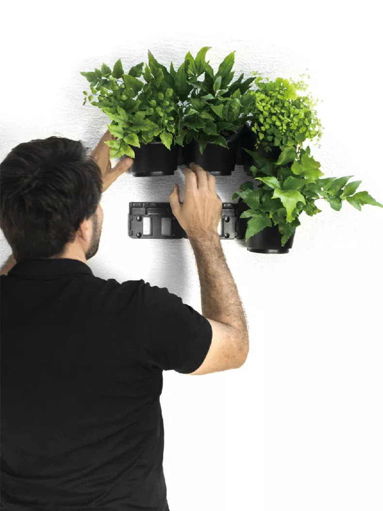 Door de verschillende maten ophangstrepen en ophangbare potten is het heel eenvoudig om de Groene levende muur binnen of buiten te creëren.