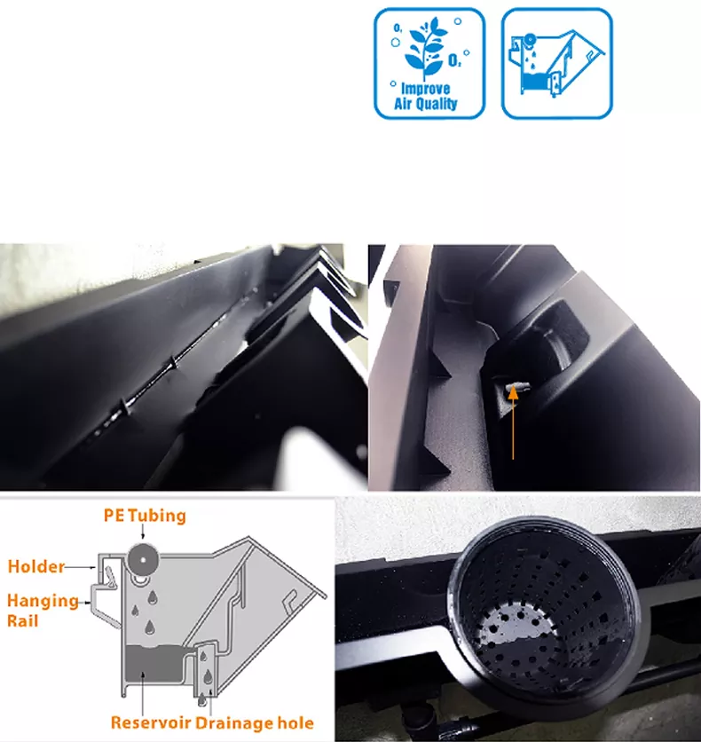 Vertically Picture Garden Extension Pot Holder beschikt over een goed ontworpen bewateringssysteem dat zorgt voor een gelijkmatige verdeling van water en voedingsstoffen over alle plantmodules. Dit helpt over- of onderbewatering te voorkomen, waardoor een gezonde plantengroei wordt bevorderd.